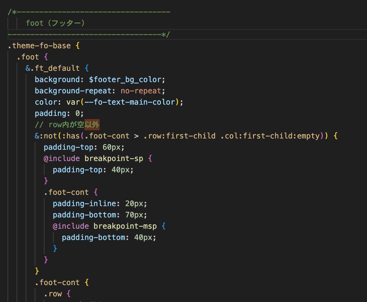 フッターのサイトマップ(リンクリスト等)を使わない運用(copyrightのみの運用)がされ、無駄な余白がでてしまうので、空の場合の記述を追加。(編集画面では余白は維持されてます)
