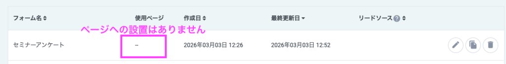 【使用しないページ】内のフォームがあるページを確認する
